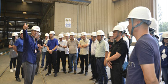 海寧市廚電五金行業協會代表一行在智能倉儲自動化事業部總經理王振國陪同下,參觀了太原市不銹鋼產業園區生產基地、山西綜改示范區唐槐產業園區生產基地、總部科技大樓和部分典型項目。