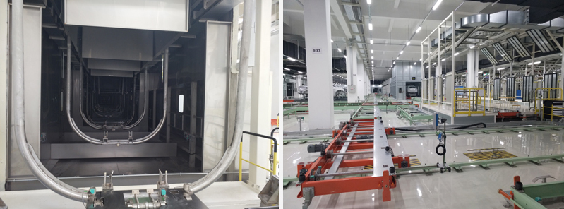 輸送線形式:前處理、電泳為擺桿輸送線;其它為滑橇輸送線