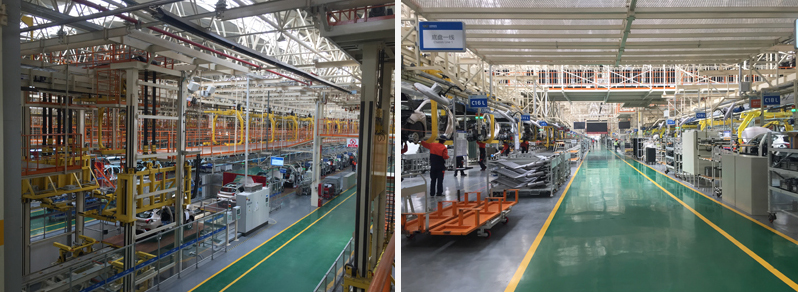 晉中吉利總裝為我公司總承包項目,包括PBS線、內(nèi)飾裝配線、底盤線、最終裝配線、車門線、OK線、淋雨線、商檢線、發(fā)動機(jī)分裝等,也包括工藝吊架及照明、KPK、工藝二次管線、全車間供電系統(tǒng)、全系統(tǒng)集成。輸送線配置有CS控制系統(tǒng)。同時配置有信息管理系統(tǒng)。車型信息控制總體功能:PBS線車身信息通過超高頻電子標(biāo)簽進(jìn)行管理,為確保系統(tǒng)運(yùn)行可靠,在轉(zhuǎn)掛處都設(shè)有12寸觸摸屏,也可人工錄入車型信息,錄入采用無線條碼掃描槍掃取整車流程卡條碼。整體配置有ANDON系統(tǒng)、AVI系統(tǒng)等。