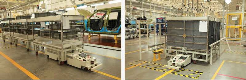 北汽(鎮江)汽車有限公司屬于北汽集團,主要生產中高端SUV及核心零部件,該AGV項目用于總裝車間內飾線與車門線物料配送,配送方式采用SPS供給模式,并結合線邊自動上下線系統,將物料按正確的數量在準確的時刻運送到正確的地點,實現無人化配送,滿足生產線40JPH節拍。AGV采用磁道航導引系統,并通過控制系統與其他管理系統即時通訊,可實現無人自動化運輸,是汽車行業等提升行業競爭力、減少人工成本、提高倉配效率的選擇。