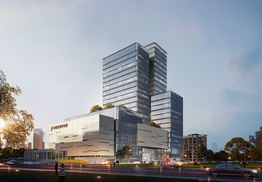 該項(xiàng)目主要包括1幢13層(局部11層)的停車樓和1幢21層的商務(wù)樓,總用地面積約22.2畝,總建筑面積70751.67㎡,停車位共計(jì)1204個(gè)。其中停車樓為鋼結(jié)構(gòu),建筑面積17908.41㎡,地下建筑3層,地上建筑13層(局部11層),停車樓內(nèi)可停918輛,室外可停118輛;商務(wù)樓為框架剪力墻結(jié)構(gòu),建筑面積為52843.26㎡,地下兩層可停車168輛,地上部分共21層,建筑總高度為99.2米。