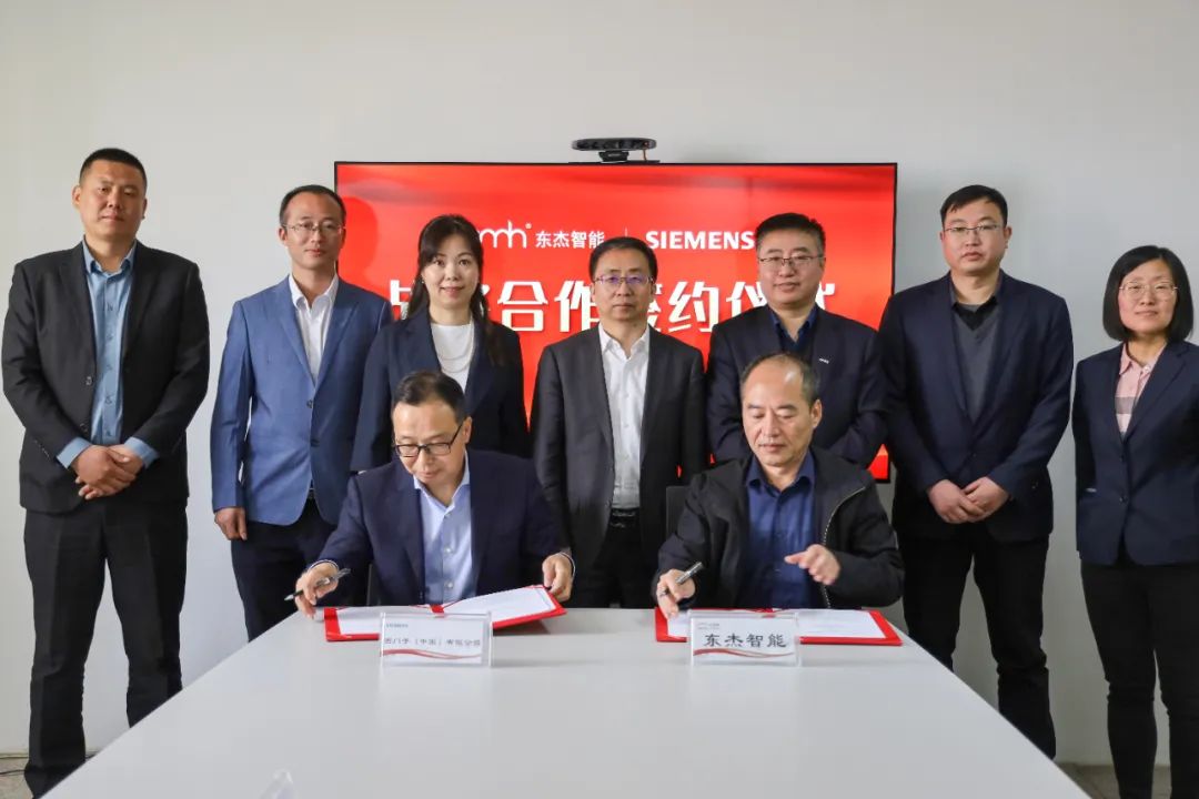 2023年4月11日,東杰智能與西門子簽訂戰略合作備忘錄,雙方將升級在智能生產、智能物流領域的數字化合作,致力于全球制造工廠基于物流系統的數字化轉型發展。西門子(中國)副總裁白利平、東杰智能副總經理朱忠義分別代表公司見證了本次簽約儀式。