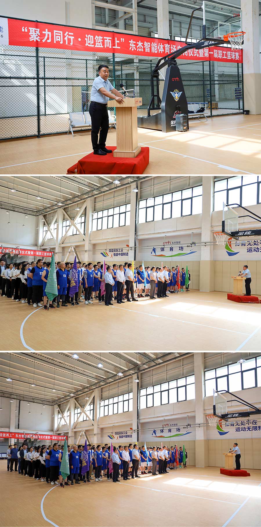 近日,一場盛大的“聚力同行·迎籃而上”東杰智能體育場啟用儀式暨第一屆職工籃球賽決賽在東杰智能總部體育場璀璨啟幕。活動(dòng)由集團(tuán)營銷中心副總經(jīng)理侯晉雷先生主持,集團(tuán)總經(jīng)理王振國先生攜高管團(tuán)隊(duì)——副總經(jīng)理朱忠義、郝志勇,董事會(huì)秘書張新海,以及總經(jīng)理助理劉云峰等親臨現(xiàn)場,共同見證了這一歷史性時(shí)刻。